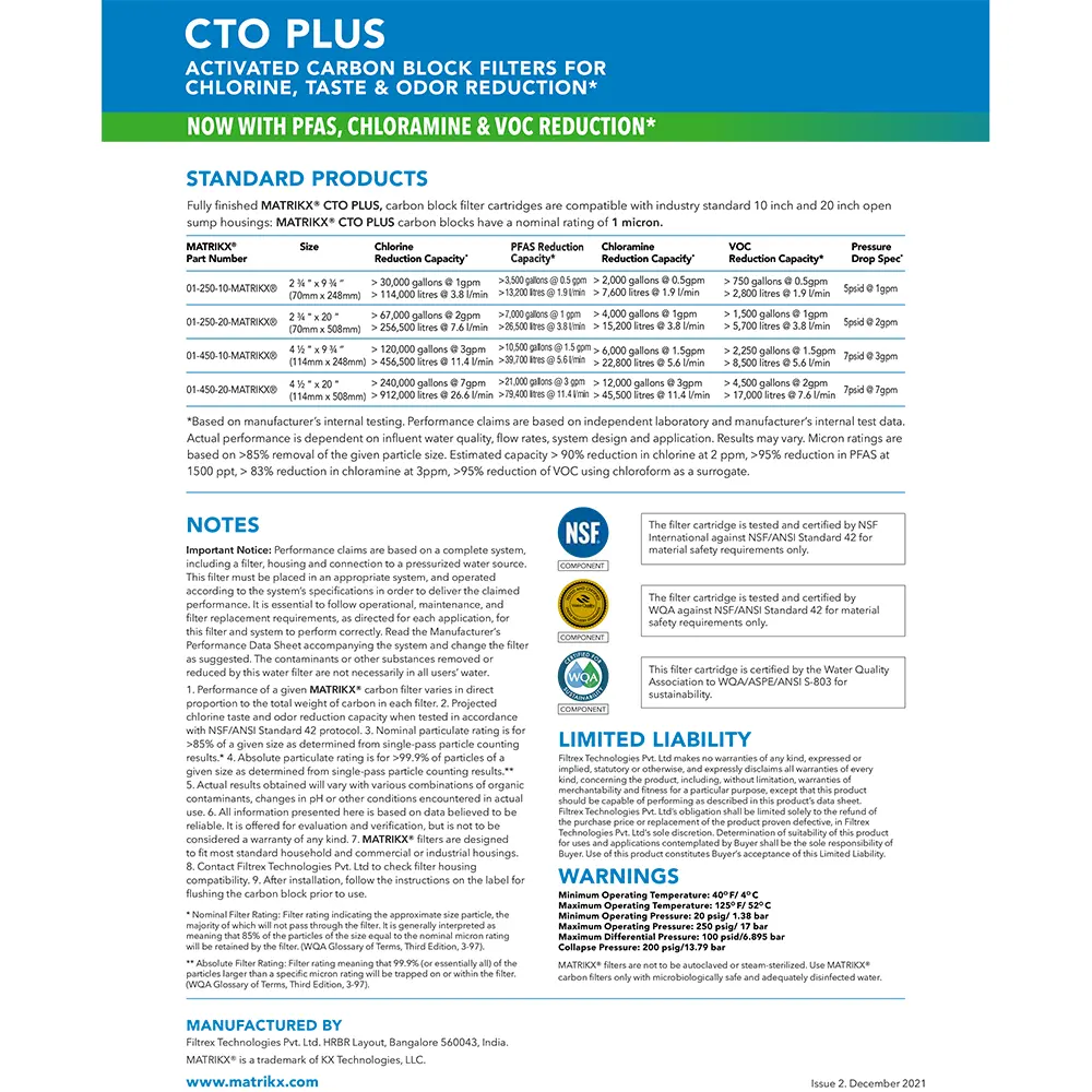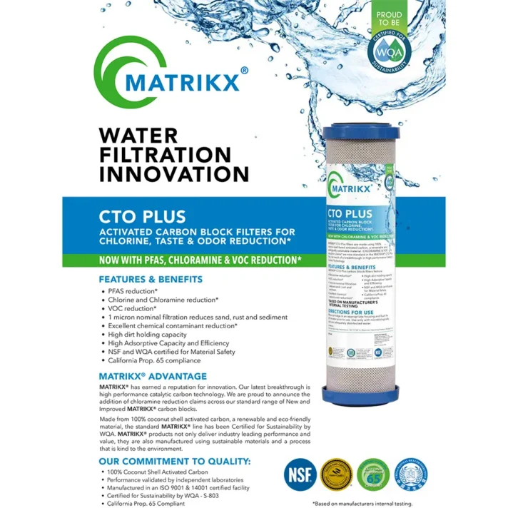The Matrikx CTO+ is the premium choice for households or businesses looking for advanced contaminant reduction, cleaner taste, and healthier water.